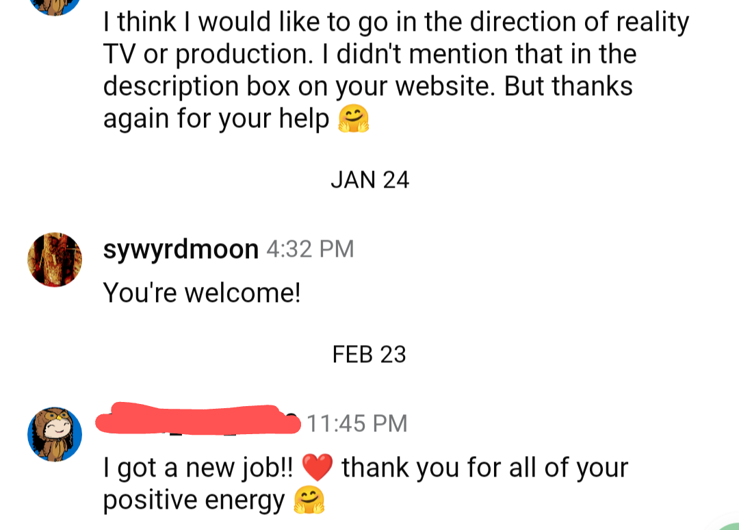 Here are reviews sent by clients through the review link on my website.